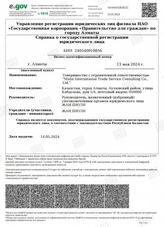 2023年3月13日,沐霖国际贸易服务咨询有限公司在哈萨克斯坦阿拉木图正式成立。